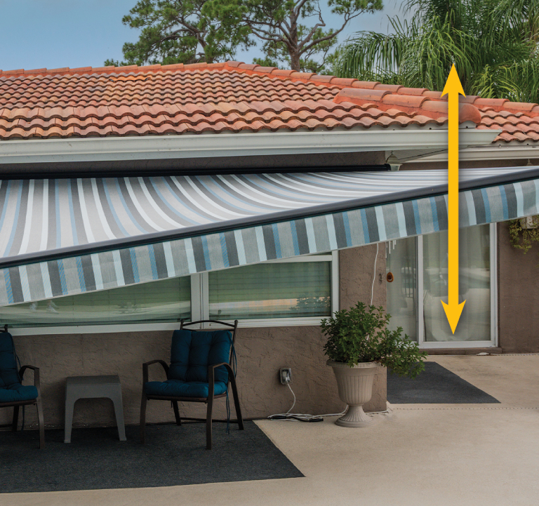 Whether you’re covering a cozy patio or a large commercial space, we custom-build every awning to your exact specs. Standard widths range from 10 to 40 feet, with projection sizes of 8’, 10’, or 12’. For smaller areas that need more reach, SunPro’s specialty cross-arm awnings provide projections up to 12 feet even on narrow frames as small as 8 feet wide.