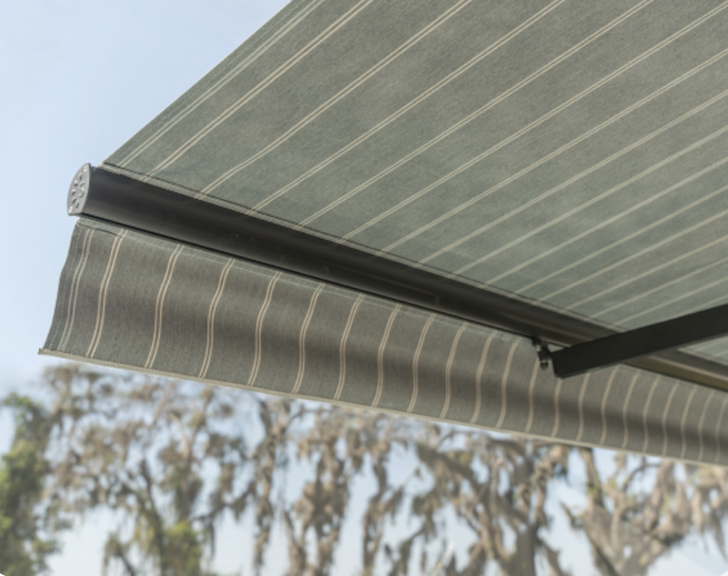 Whether you’re covering a cozy patio or a large commercial space, we custom-build every awning to your exact specs. Standard widths range from 10 to 40 feet, with projection sizes of 8’, 10’, or 12’. For smaller areas that need more reach, SunPro’s specialty cross-arm awnings provide projections up to 12 feet even on narrow frames as small as 8 feet wide.