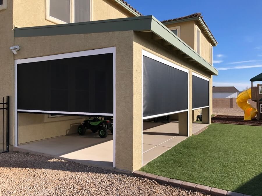 Motorized solar screens act as a solar barrier, blocking a significant portion of heat and UV rays before they reach your windows or outdoor areas—without permanently enclosing the space.